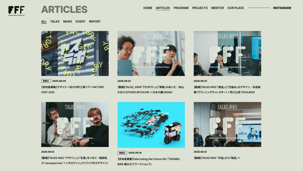 FFF Tokyoは、デザイン/プロダクト/建築領域におけるプロトタイピングに特化したインキュベーションプログラムです。
